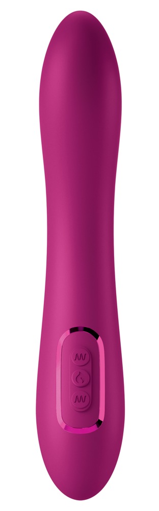 Ergonomisch geschwungener Vibrator Solis Form 6 von JimmyJane mit Wärmefunktion für vielseitiges Verwöhnen mit Komfort. 2 kraftvolle Motoren sitzen im Kopf und im Schaft: Die Kopfvibrationen gehen besonders tief (Bass), die Vibrationen im Schaft passen sich sanft an (Treble). Beides ist getrennt voneinander in jeweils 10 Modi bequem per Knopfdruck steuerbar. So kann mit dem soften Vibrokopf gezielt die vaginale G-Zone oder anale P-Zone, sowie äußere Lustpunkte, wie Klitoris, Hoden etc. verwöhnt werden.