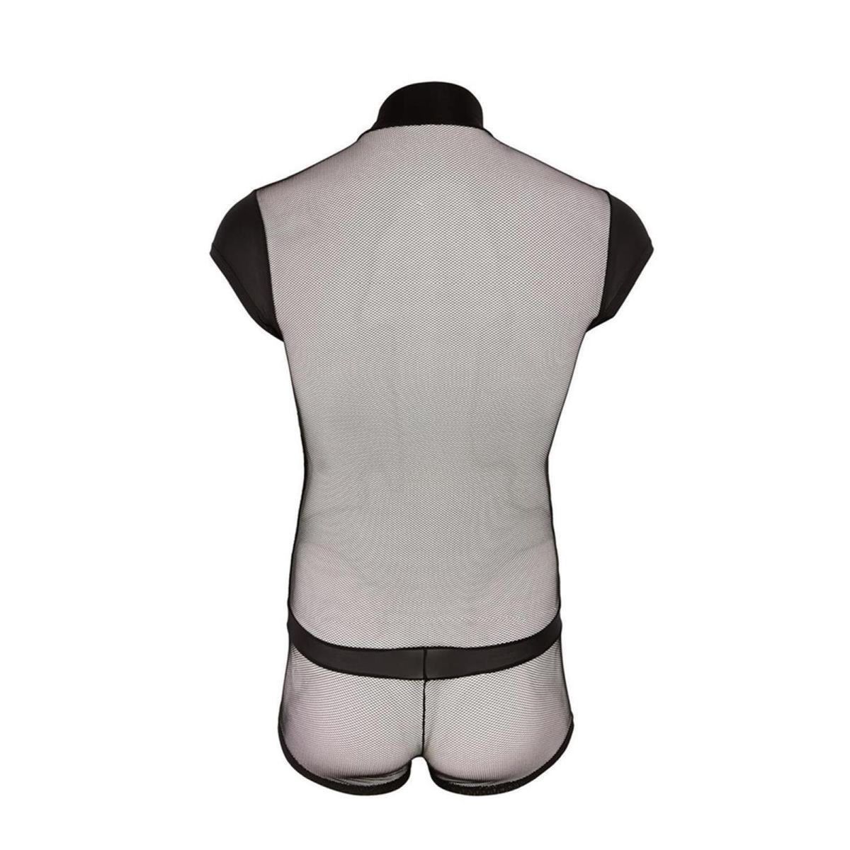 Dieser Kurzbody mit kurzem Arm setzt Sie raffiniert in Szene! Der Materialmix aus zwei Netzarten und die angesagte Streifenoptik gewährt dem Betrachter aufregende Einblicke. Reißverschluss vorne und im Beutel unterlegt.